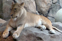 Lions live in groups called “prides” generally consisting of five to ten females and two or three males. In the wild males often die young from wounds received battling other males. The female lions do most of the hunting and they work as a team. Lionesses (another name for female lions) can run up to 40 mph (60km/hr) but not for very long. They generally hunt by sneaking up on their victims. The male lion’s famous mane plays a role in attracting females. Manes that are darker and heavier show that the lion is healthy and lions with such manes are more attractive to females. Lions can survive four or five days without water!