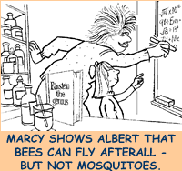 Dr Galapagos in his fabulous single-tortoise copter Can Bees fly? It sure looks like flying to most of us. Then why do some folks say they shouldn't be able to fly? Dr. Galapagos, who can only fly in cartoon land, discusses the mysteries of bee aerodynamics in the answer below