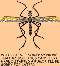 Now for a brief digression. The story of how some scientist or aerodymic engineer proved bees or insects can't fly is, I think, an urban myth. An urban myth is a story that is repeated over and over by all kinds of references and is assumed by everyone to be true because they heard it someplace else, sometimes even in books, magazines, news reports, etc. But, in fact, it is not true. I have researched this urban myth a little through the years and found many different versions of how it came about. None of them were verifiable, but at least one was supposedly based on the testimony of some reputable individuals who were there at the birth of one of these stories. Since it is typical, I will tell it here.
