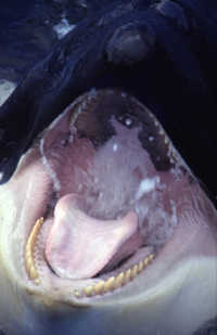 Inside the mouth of the orca (a kinder gentler name for killer whale), the last thing that some seals, sea lions, fish, squid, porpoise, whales, and many other sea creatures ever see. Orcas are friendly to each other, and pretty friendly to us humans, but they will eat just about everybody else.