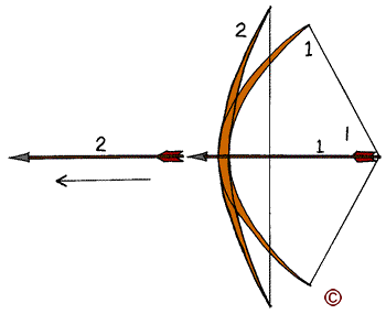 right. In position 1, the bow is drawn, just like in both drawings above. The