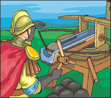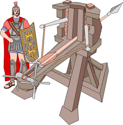 (in the case of the stones and arrows) than their own muscles could fling them.