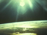through the 93 million miles of space vacuum between us and the sun in eight and