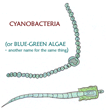 These cells are mostly algae and blue-green algae (the blue-green algae are often