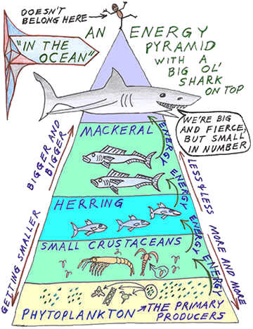 ocean. It hasn't been used up by several layers of bigger and bigger fish eating